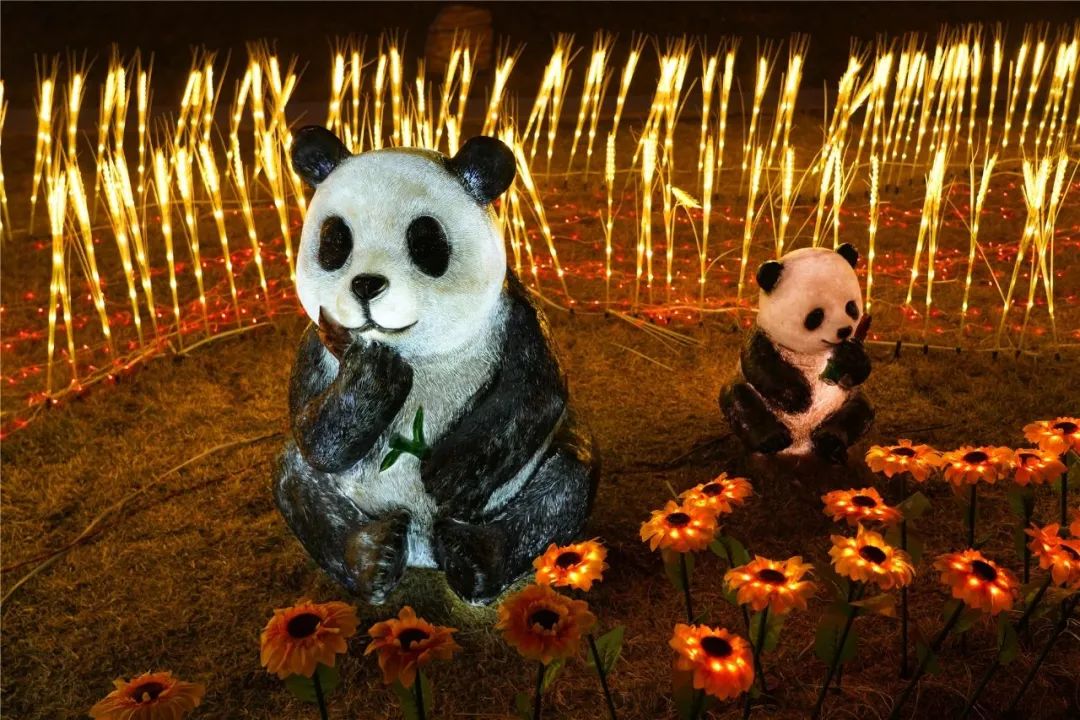 小鹿送上福禄寿 憨态可掬大熊猫
