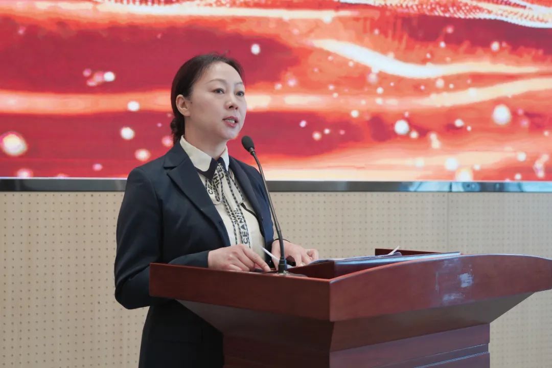 孙霞宣读《陕西省优秀企业家评选、陕西百强和民营50强企业排序工作汇报及审议宝鸡市工业发展集团拟任宝鸡企联会副会长单位》文件