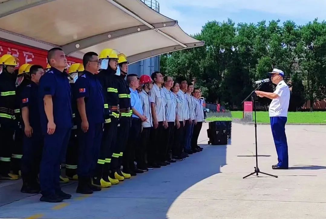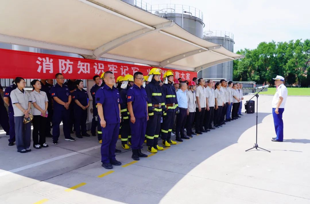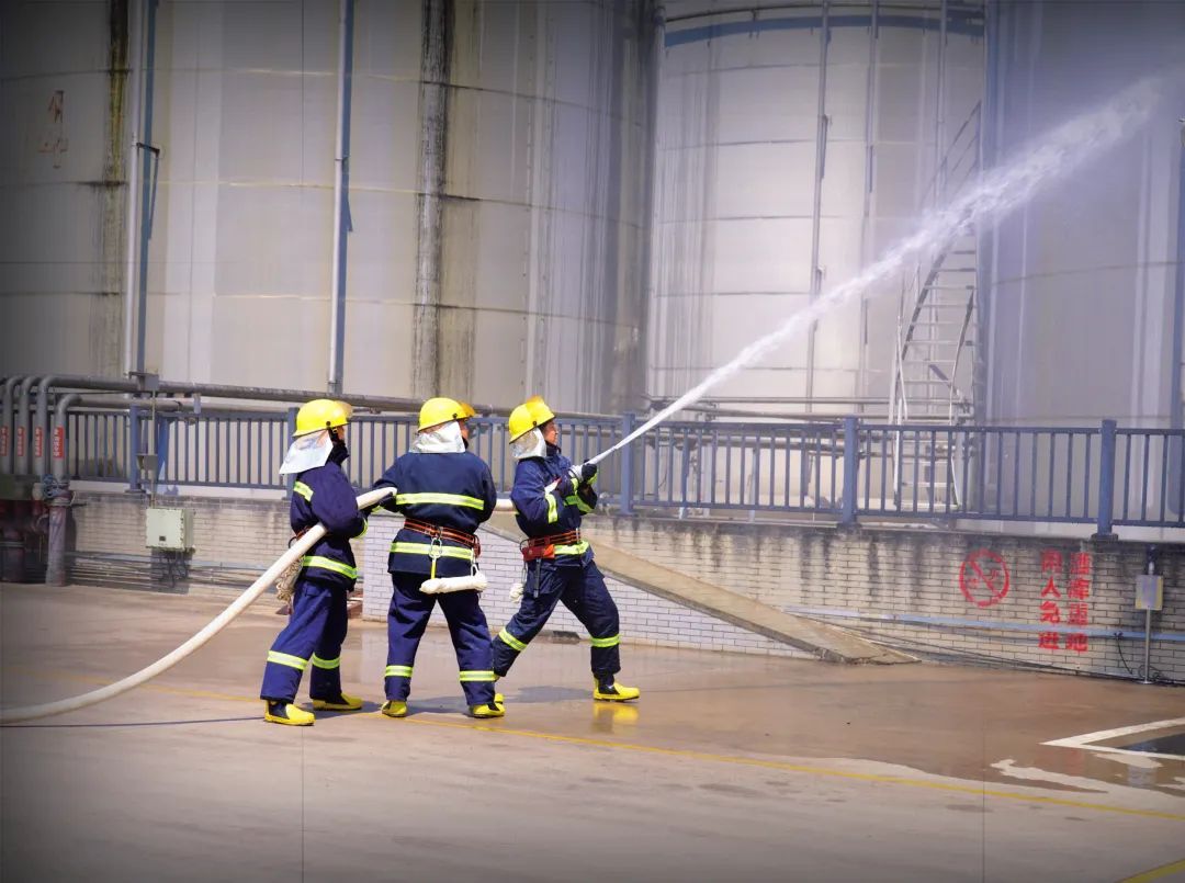 演练背景模拟基酒储存管理中心1.8万方酒罐群突发火情,酒液泄漏引发流淌火并引燃12号酒罐,1名作业人员烧伤,周围酒罐随时有被引燃的可能。